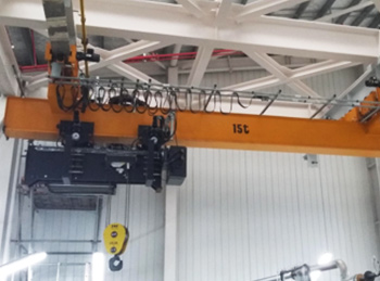 ? 單梁懸掛起重機的大車車輪是倒掛在工字鋼軌道上行走,最大噸位可達20t,當廠房空間設計有限時,可選用單梁懸掛起重機。